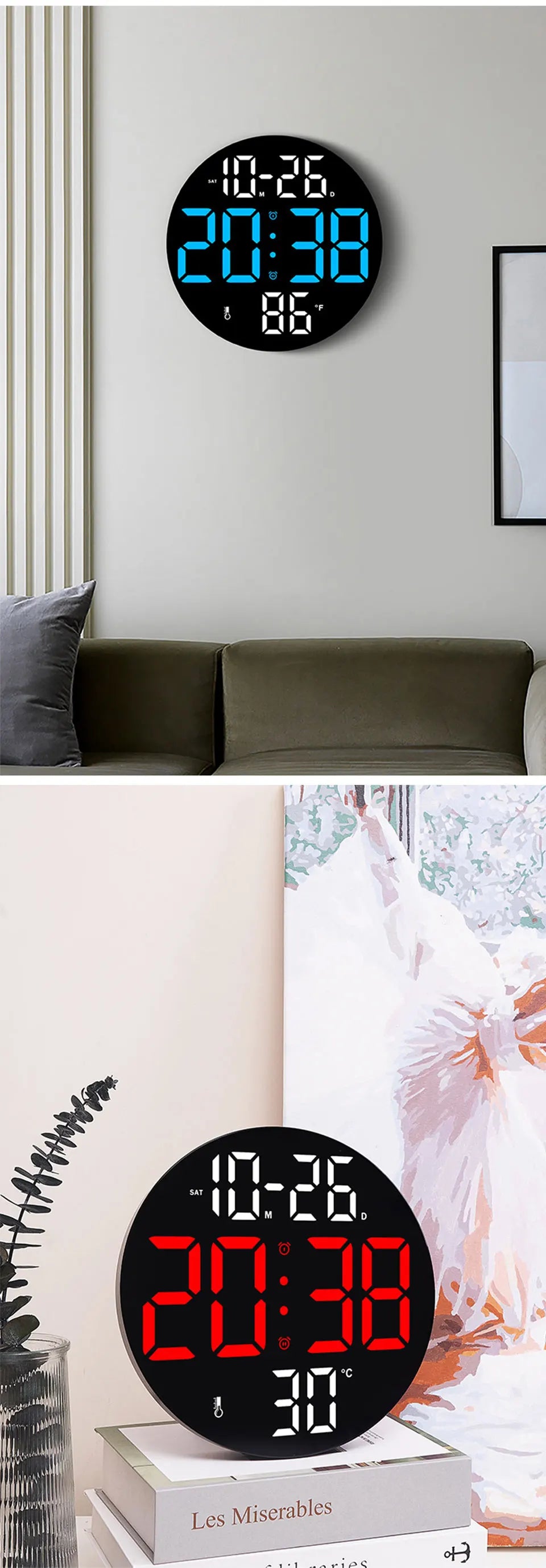 10inch LED Large Digital Wall Clock with Dual Alarms Calendar and Temperature Display Brightness Adjustable Countdown Home Clock