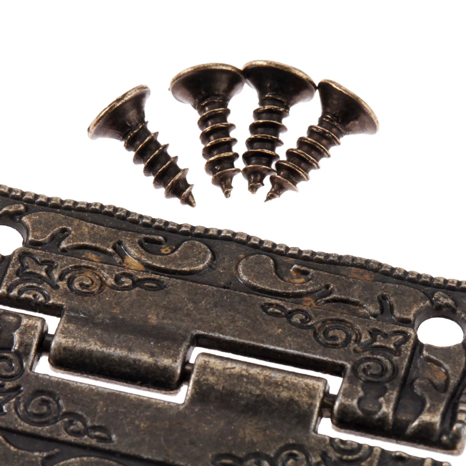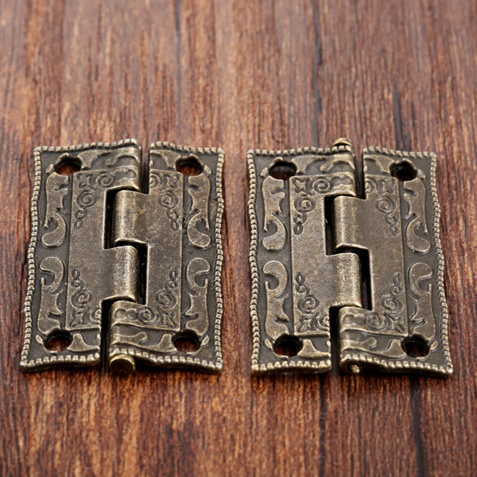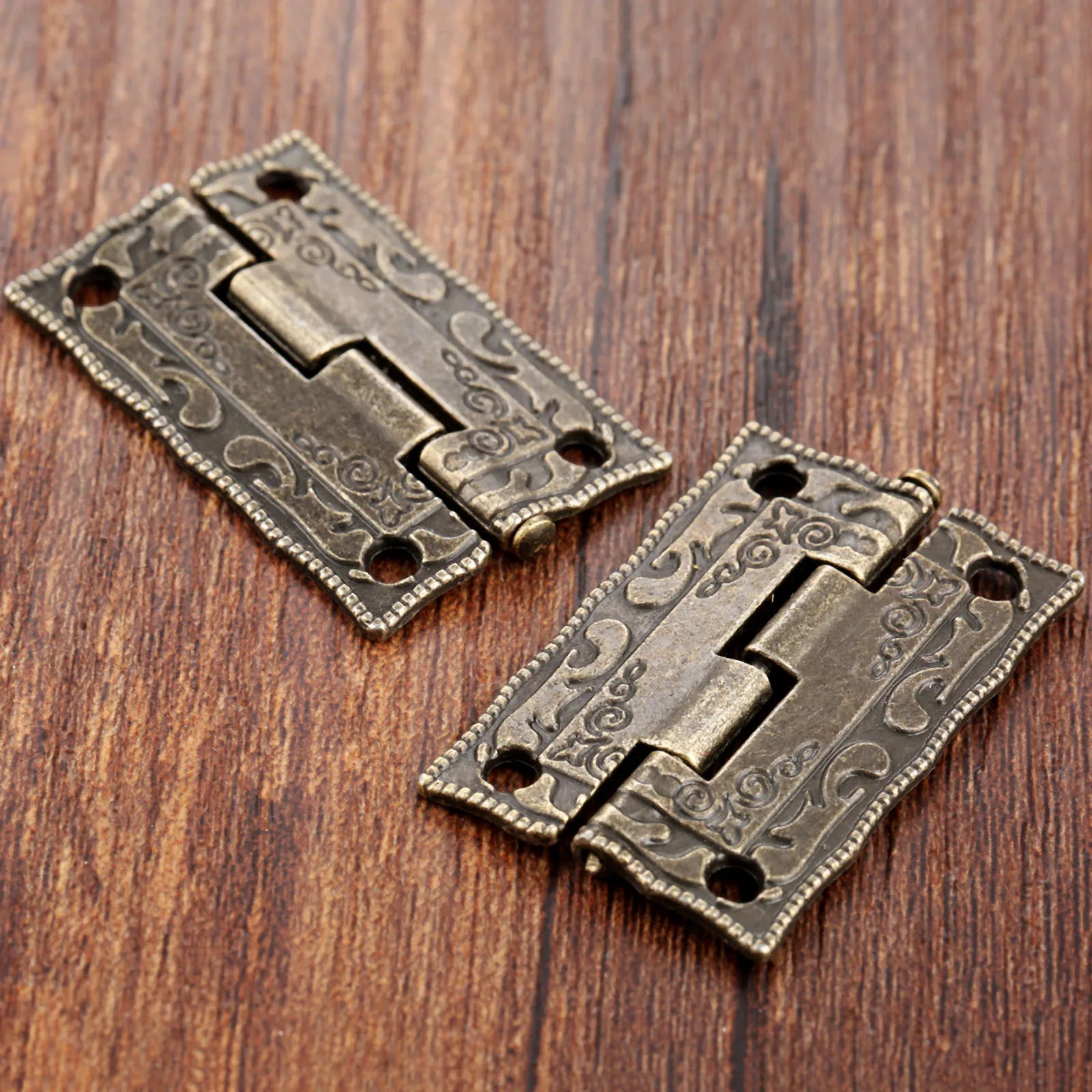 10pcs 35*23mm Decorative Mini Hinge For Jewelry Wooden Box Antique Bronze Hinges Cabinet Door Drawer Furniture Hardware + Screws