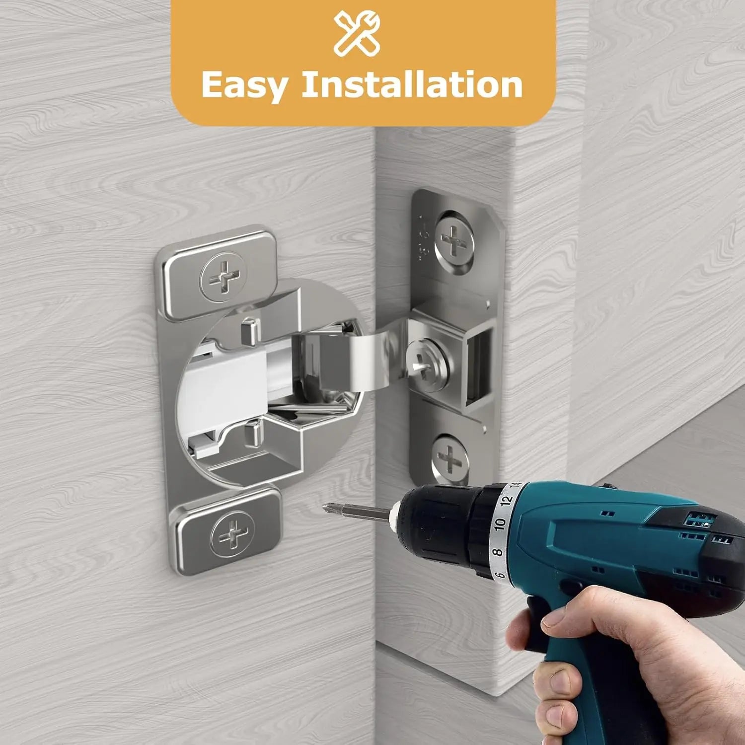 2PCS 1-3/8 inch Overlay Concealed Frame Kitchen Cabinet Hinges 105° Open Angle Soft Close Hinges Satin Nickel Hidden Hinges
