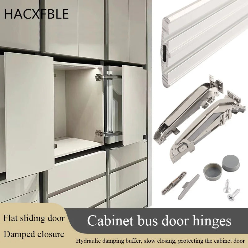 Cabinet Bus Door Hinges Wardrobe Folding Silent Slide Rail Lateral Swing Opening Damping Buffer Door Hinge Furniture Hardware