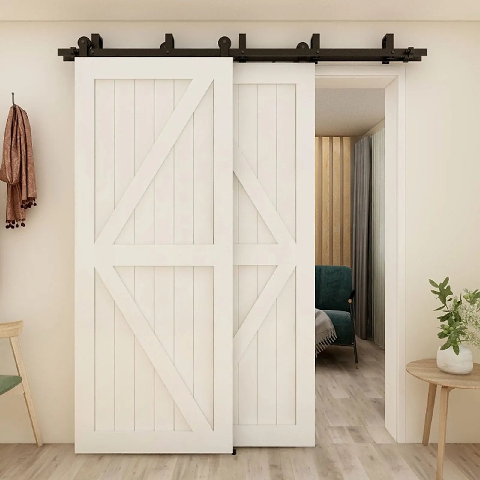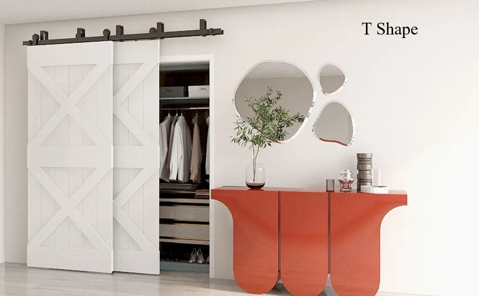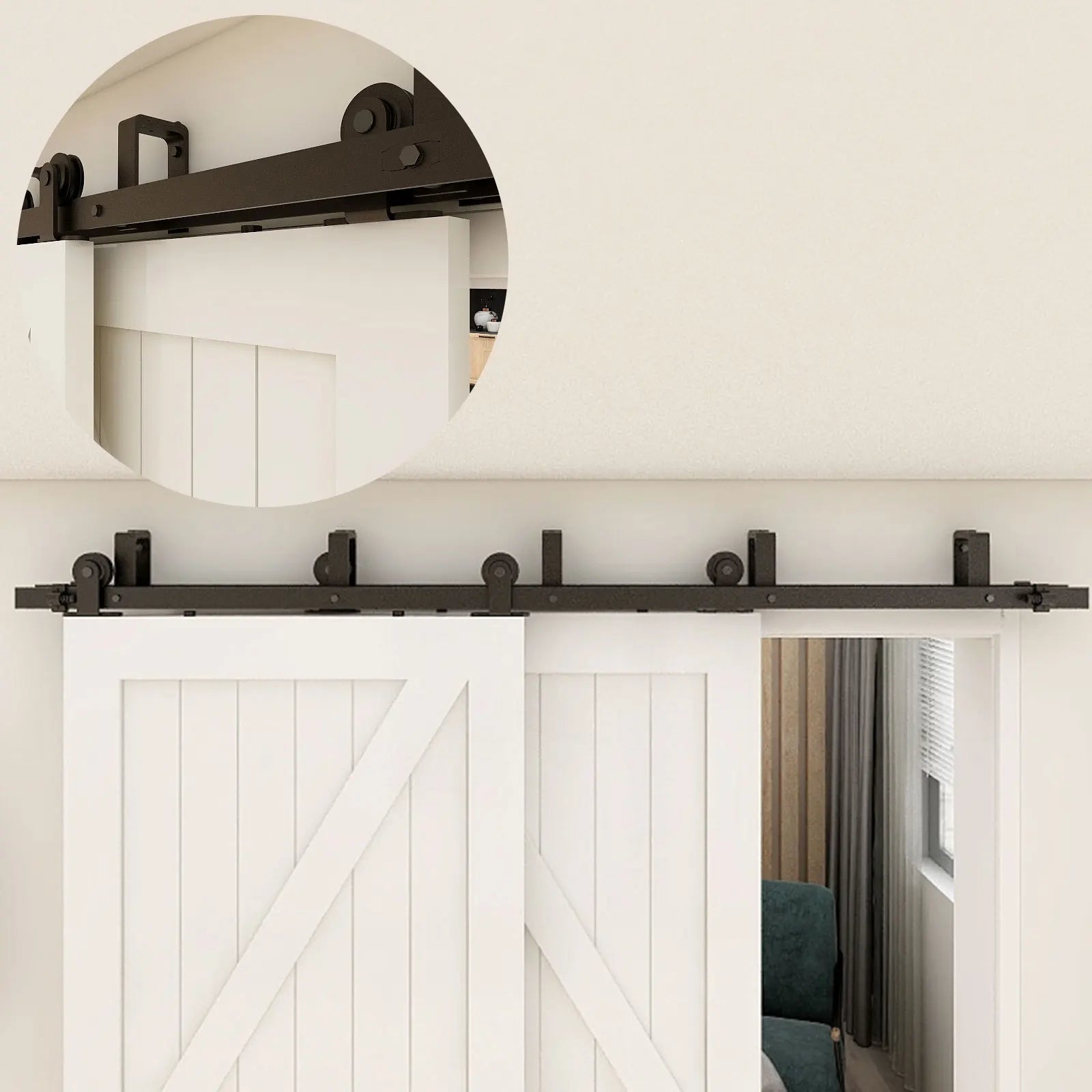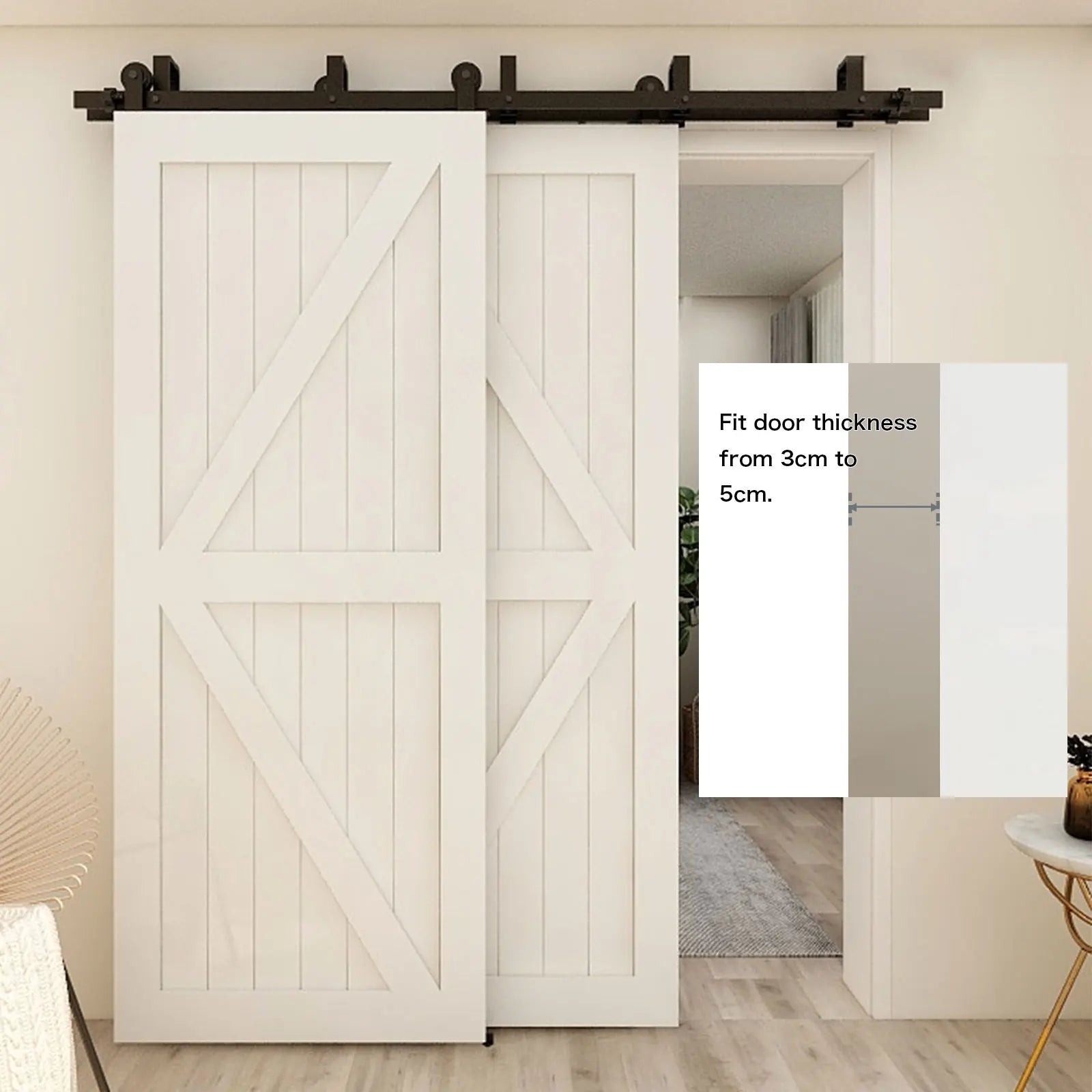 CCJH Bypass Barn Door Slides Hardware Kit Sliding Door Hanging Rail System T Shaped Roller Track for Double Door Save Space