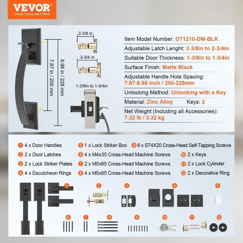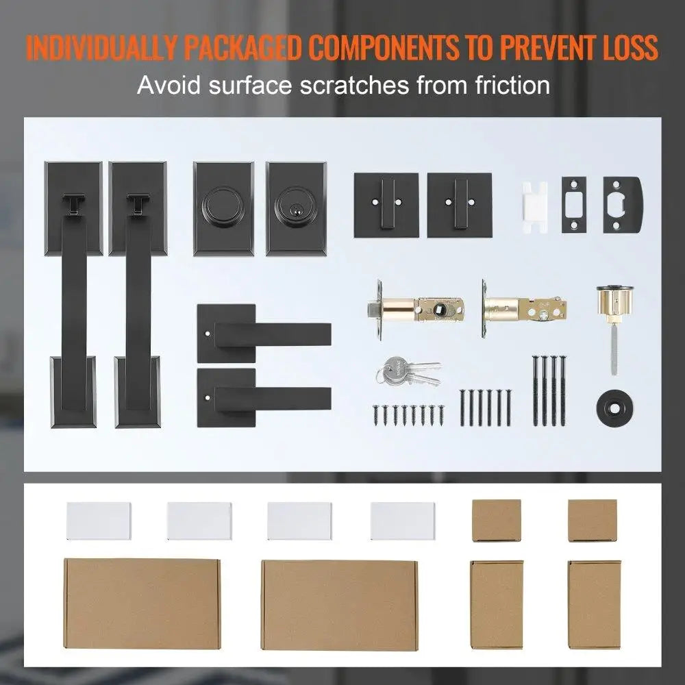 Double Door Handle and Lock Set Matte Black Arched Lever Design