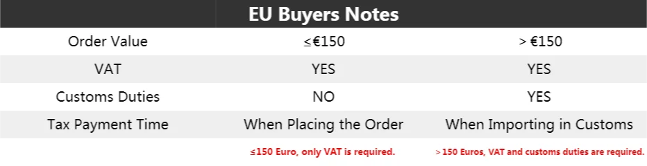 1.When the order amount exceeds 150 euros, please tell us your VAT number.