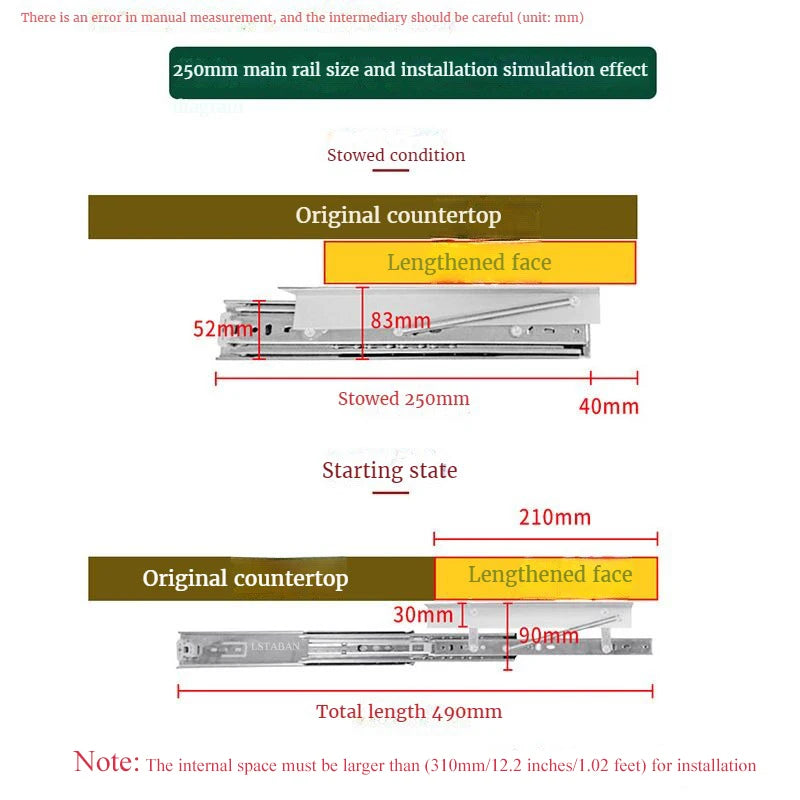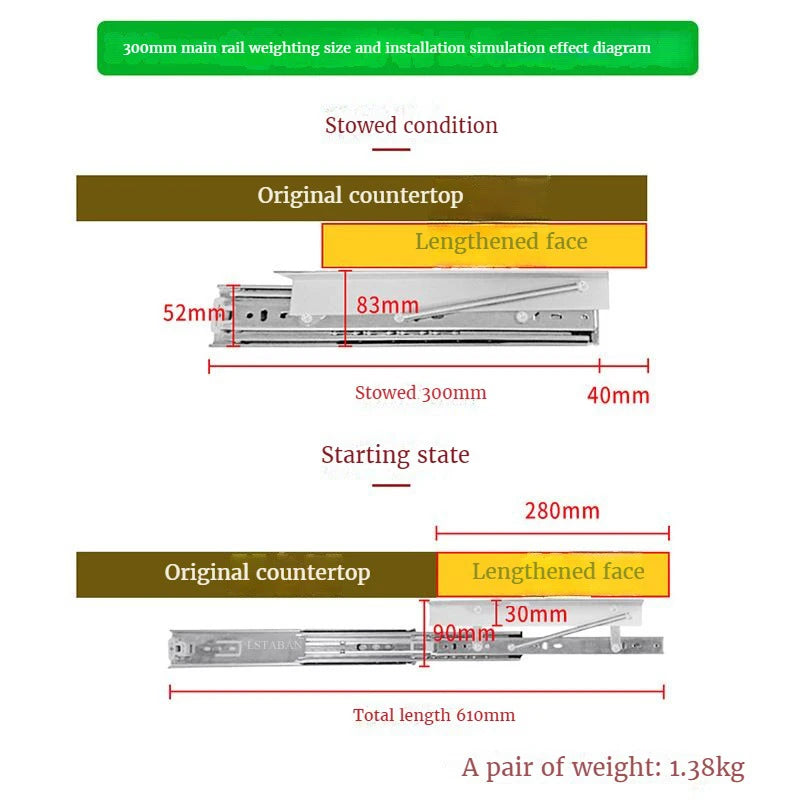 Heavy Pull Out Pop Up Slide Rail Supporting Bracket Furniture Table Top Conceal Folding Leaf Extension Slide Rail