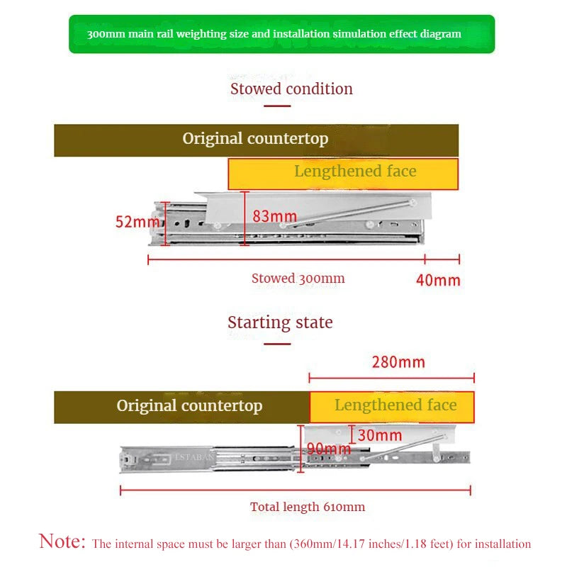 Heavy Pull Out Pop Up Slide Rail Supporting Bracket Furniture Table Top Conceal Folding Leaf Extension Slide Rail