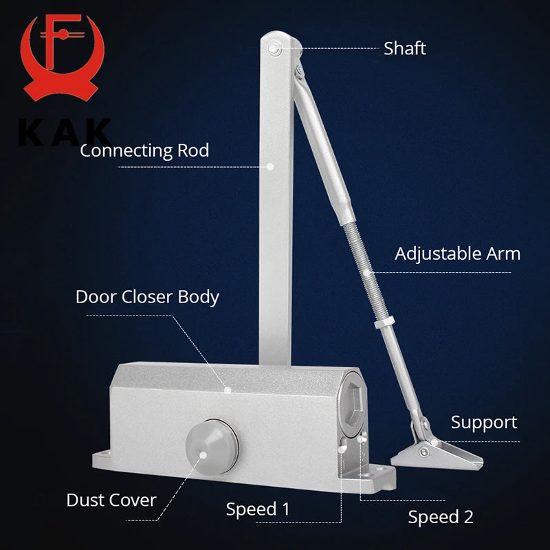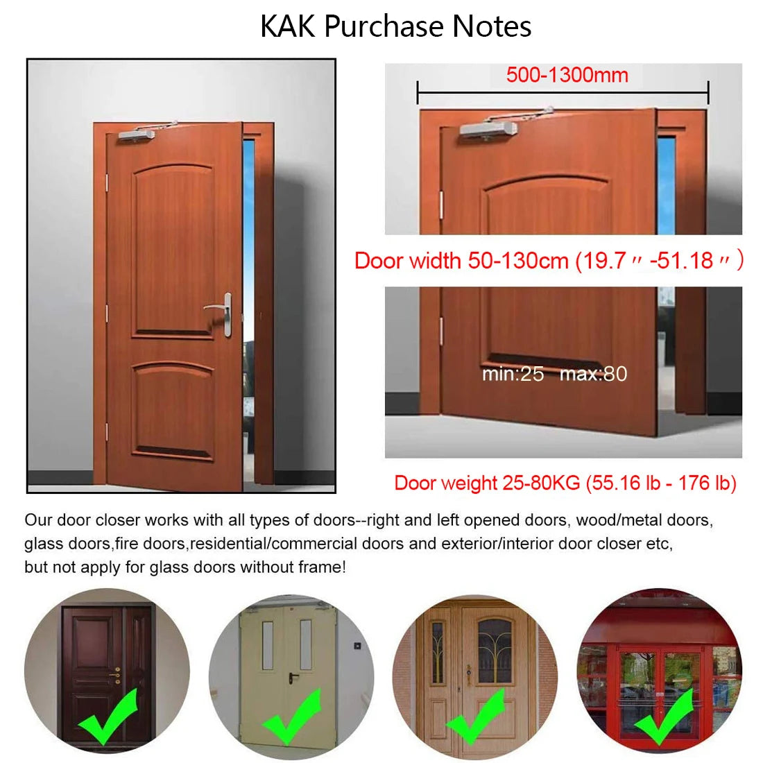 KAK Automatic Door Closer 2 Spring Hydraulic Buffer Adjustable Door Stopper Speed Mute Closing For 25 to 80KG Door Hardware
