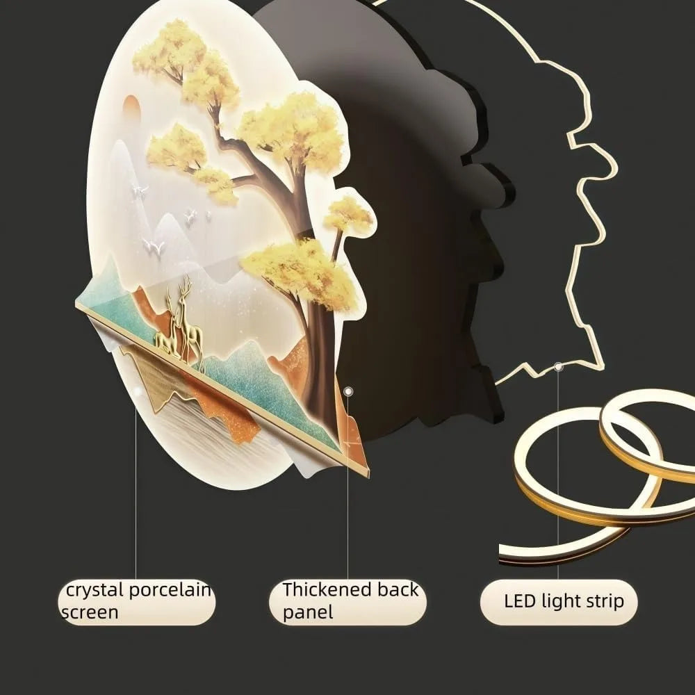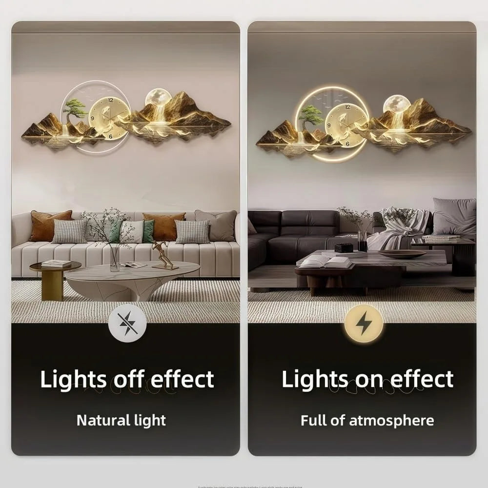 Modern 3D LED Wall Clock, Mountain View Decoration, Elegant Wall Art Clock for Home Decoration Living Room, Bedroom, Office(Smal