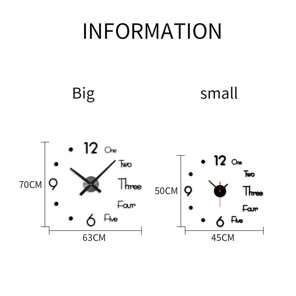 Modern Design Large Wall Clock 3D DIY Quartz Clocks Fashion Watches Acrylic Mirror Stickers Living Room Home Decor Horloge
