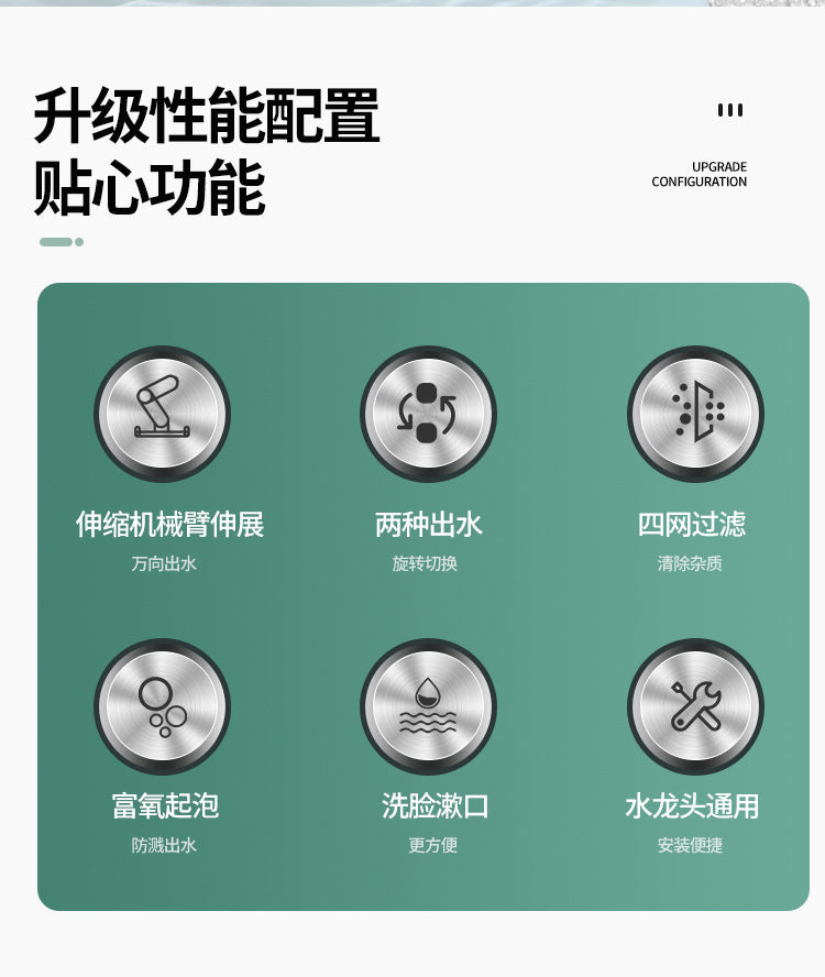 New Metal 1440 °Retractable Universal Robotic Arm Swivel Extension Faucet Aerator Kitchen Sink Faucet Extender 2 Water Flow Mode
