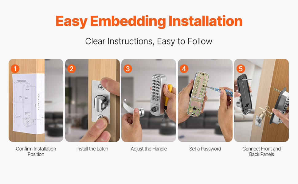 SucceBuy Mechanical Keyless Entry Door Lock 14 Key Mechanical Door Lock Mechanical Keypad Door Lock Handle Stainless Steel Lock